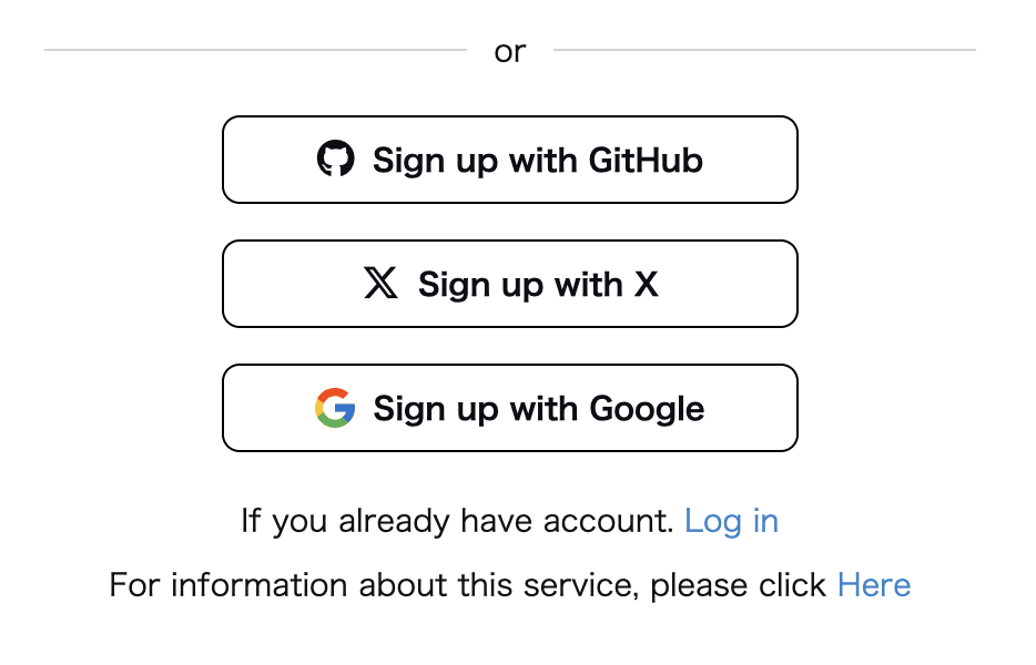 In addition to registering with an email address, you can also register with a GitHub, Twitter, or Google account.