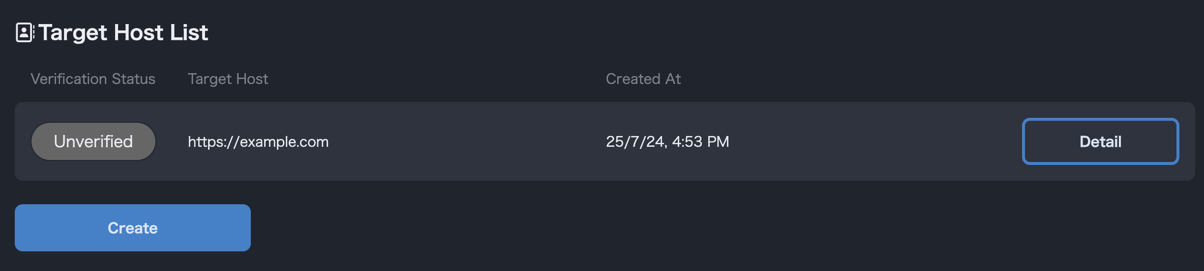 After uploading the verification token, press the Host Verification button on the details page of the target host to perform the verification of the target host.
