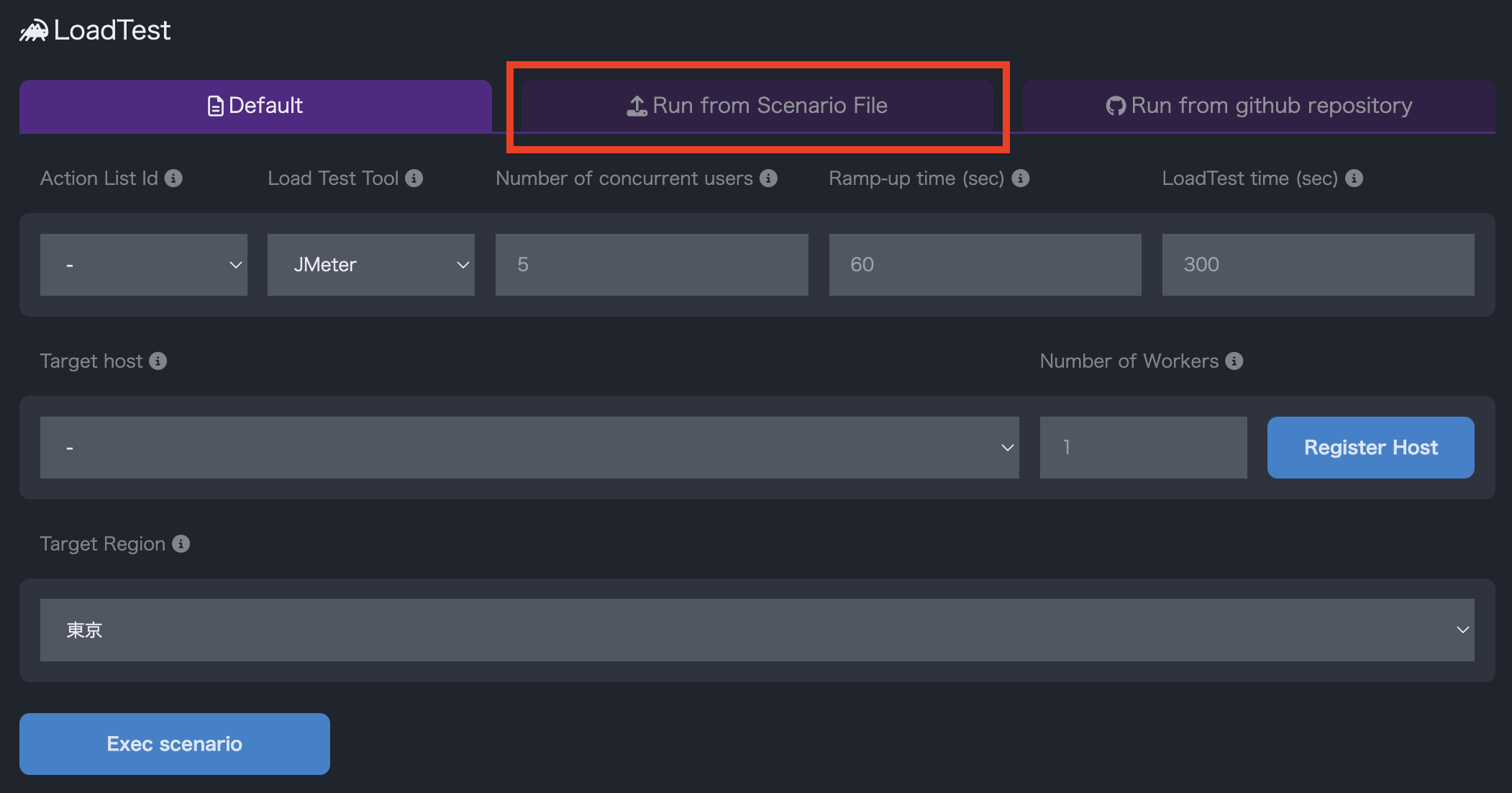 After selecting the scenario, configure the parameters for the load test and click Execute Scenario to start the load test.