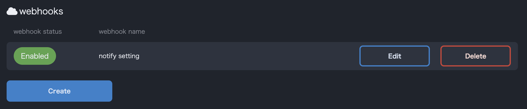 Multiple webhooks can be registered, and existing webhooks can be edited or deleted.