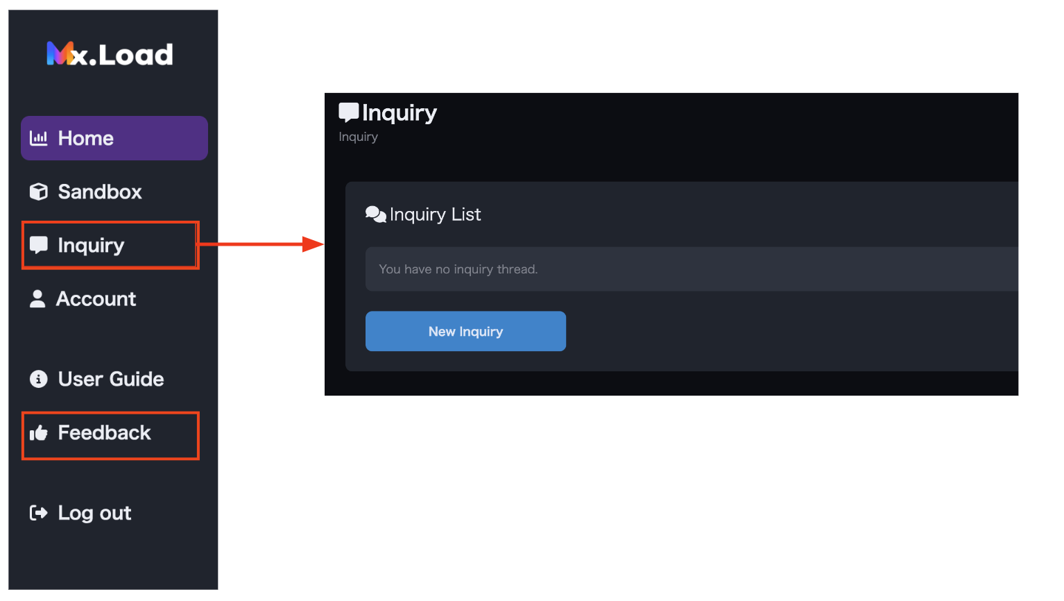 8.1 Contact Us Contact Us For questions or inquiries regarding the service, please contact us through the Contact Us form. Feedback We welcome your feedback and suggestions for Mx.Load. Please share them with us through the Feedback form. Contact Us and Feedback